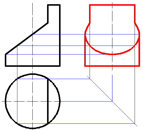 1.补齐五棱柱的侧面投影,并补全其表面A、B、C、D四个点的投影。判断下图是否正确。(图中黑色线条为原题,蓝色为作图线,红色为作图结果。)