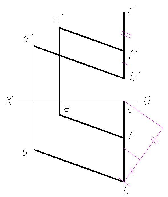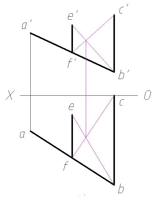 判断投影图中,直线EF是否属于平面ABC(填空属于或不属于)。