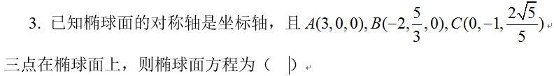 2. 一曲面上任一点到点B(-4,0,0)距离为到点A(2,0,0)的距离的二倍,该曲面方程为( )