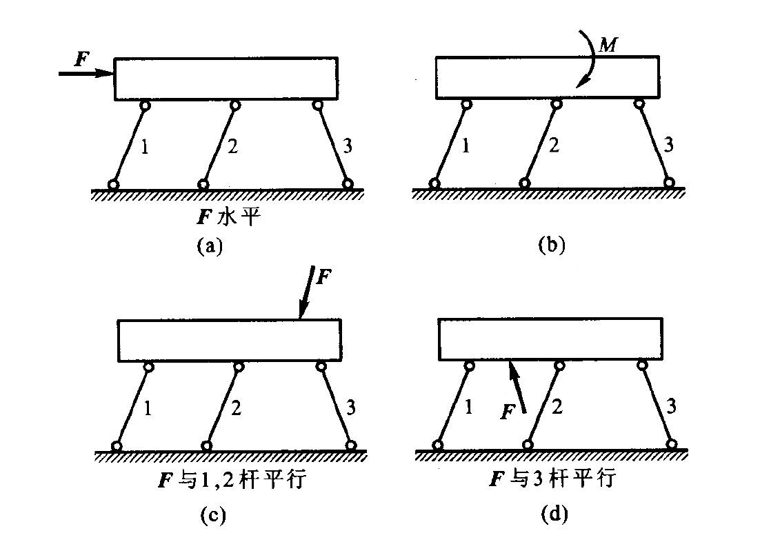 答案: 【 图(c)中1杆受拉力,2杆受压力,3杆不受力。;
