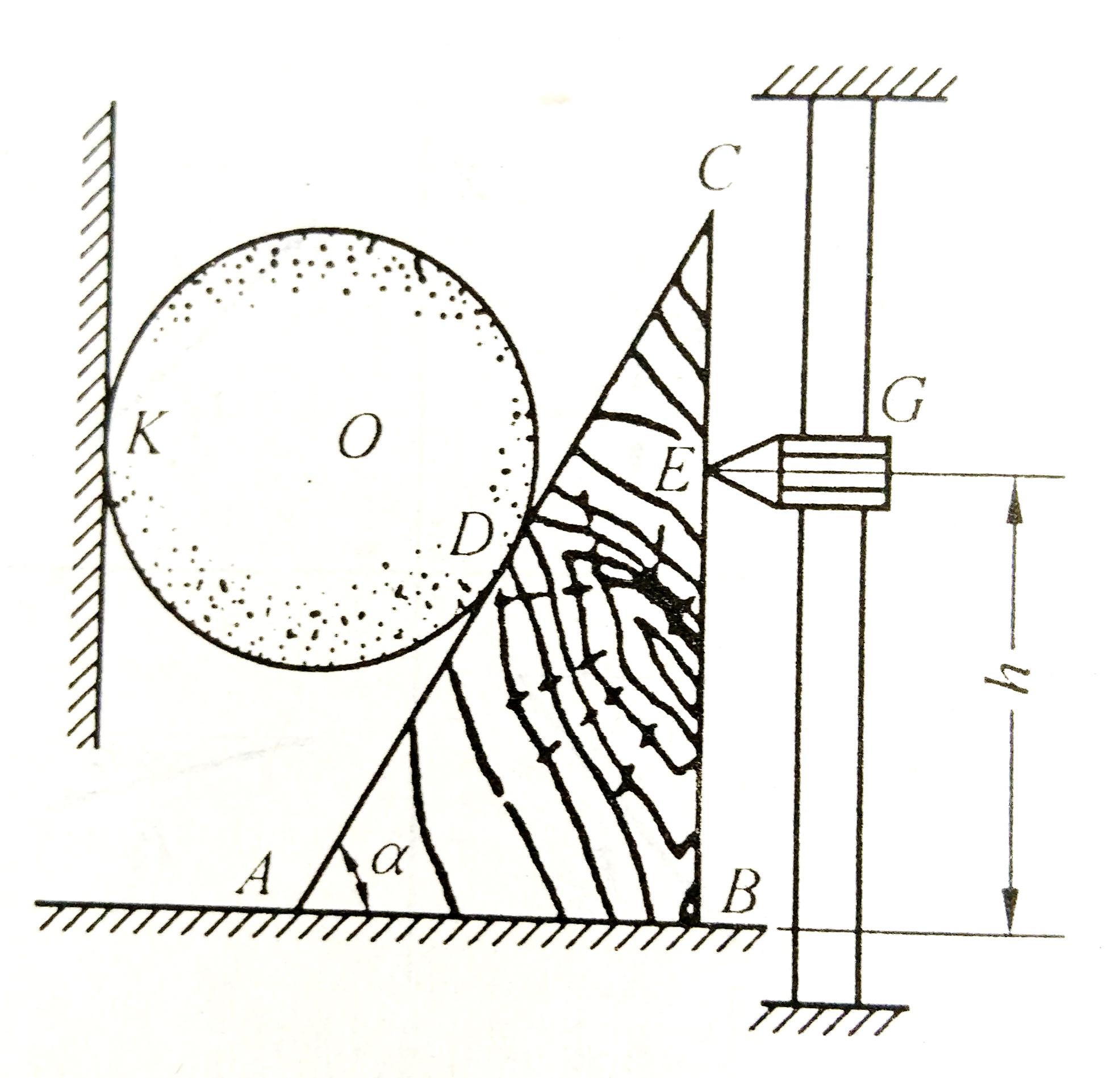 图示系统无摩擦,球重为P,三角木块重量不计,挡板G高度为h。为使系统处于平衡,下述说法正确的是