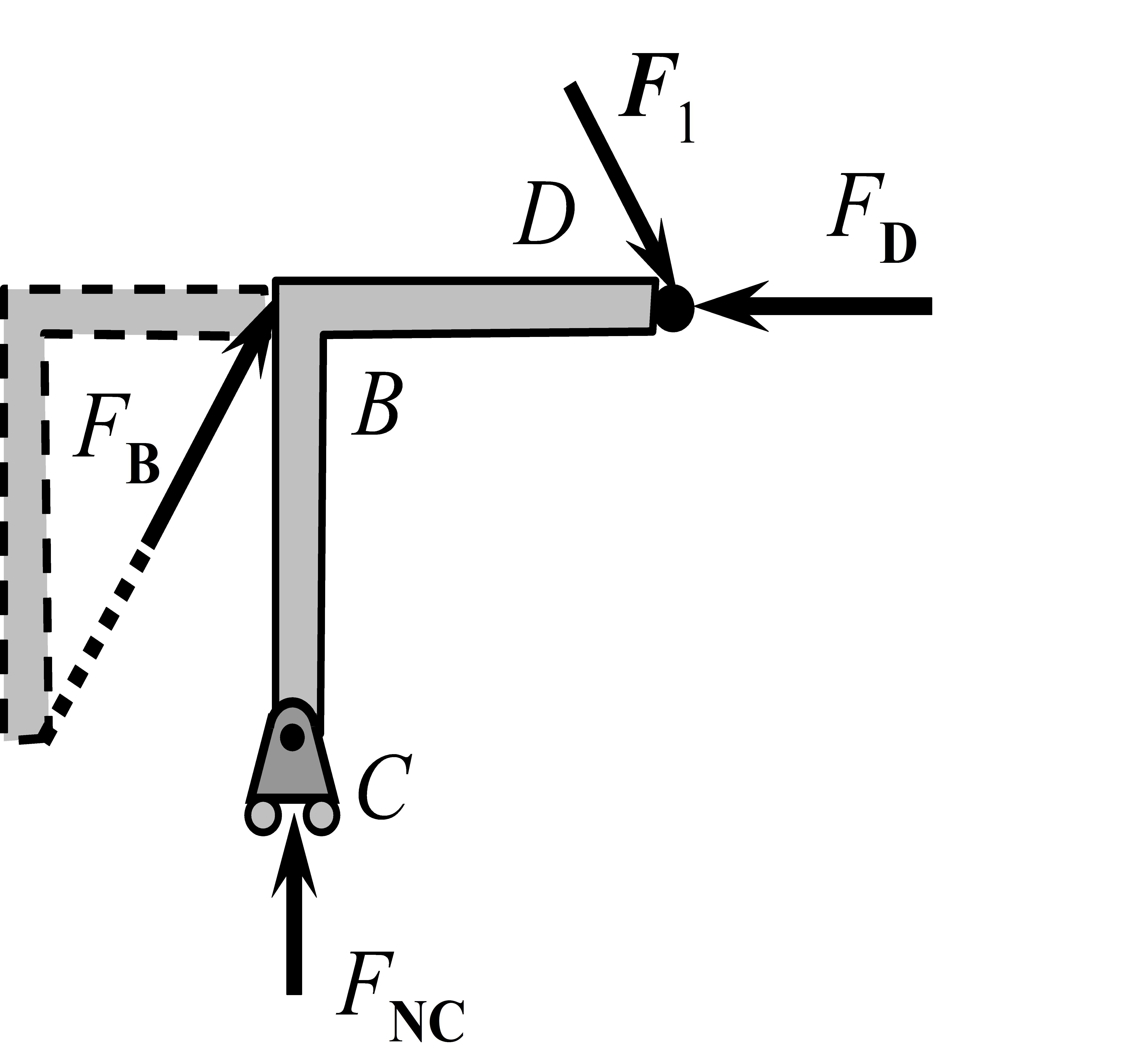 B: 不考虑CB杆的受力情况,单独考虑AB杆,不带销钉: