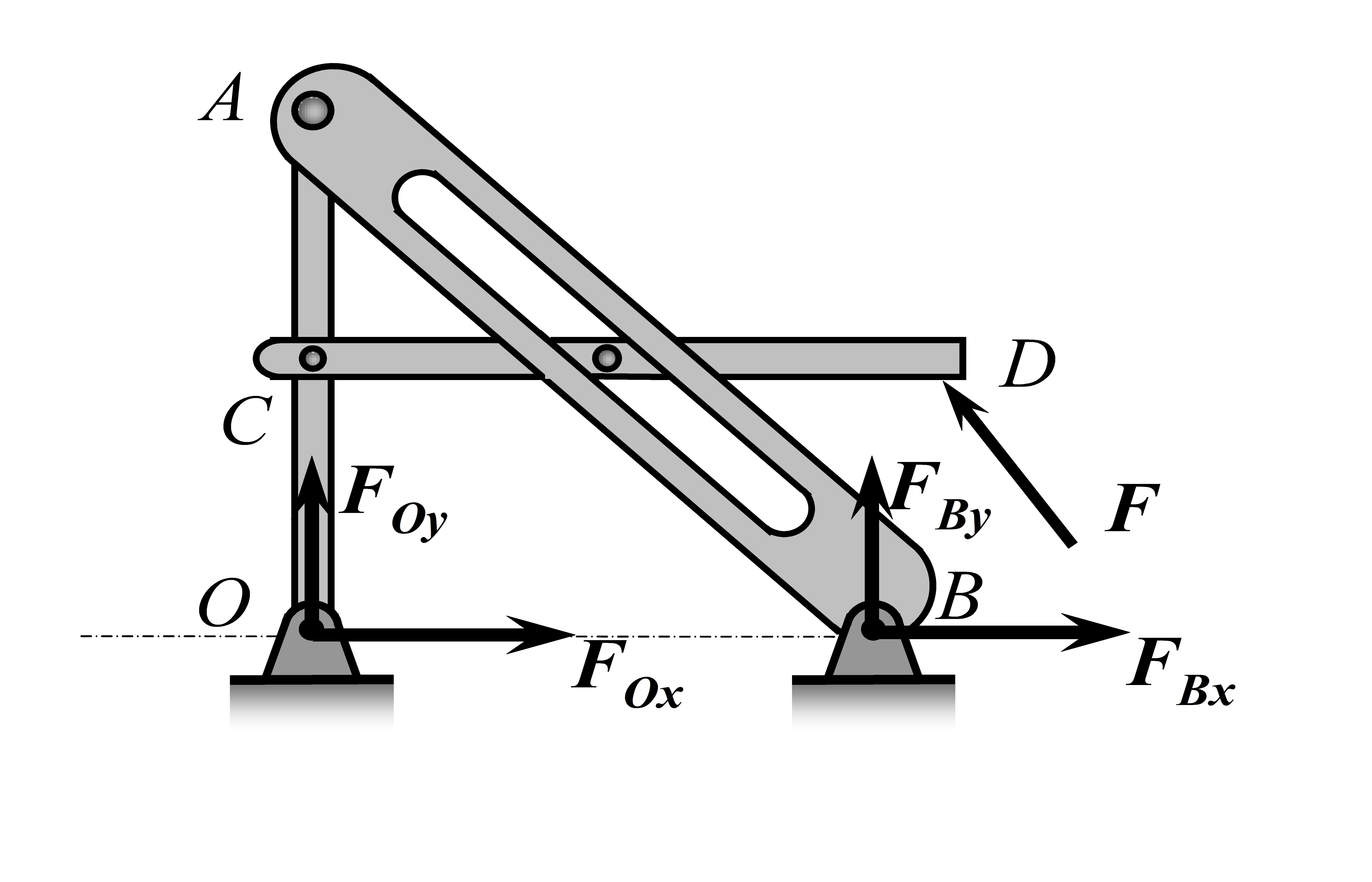 A: 不考虑CB杆的受力情况,单独考虑AB杆,不带销钉: