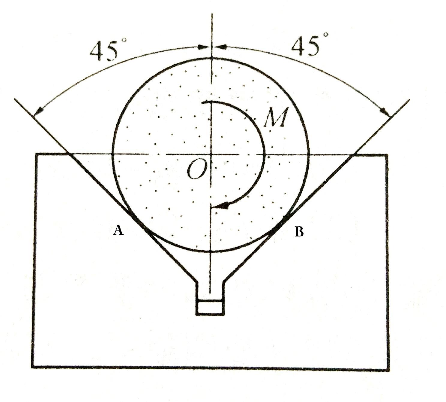 如图在V型槽中放一重为P的圆柱,摩擦系数为fS,圆柱半径为R。欲使圆柱转动,在上面加上一个矩为M的力偶,力偶矩最小为()。