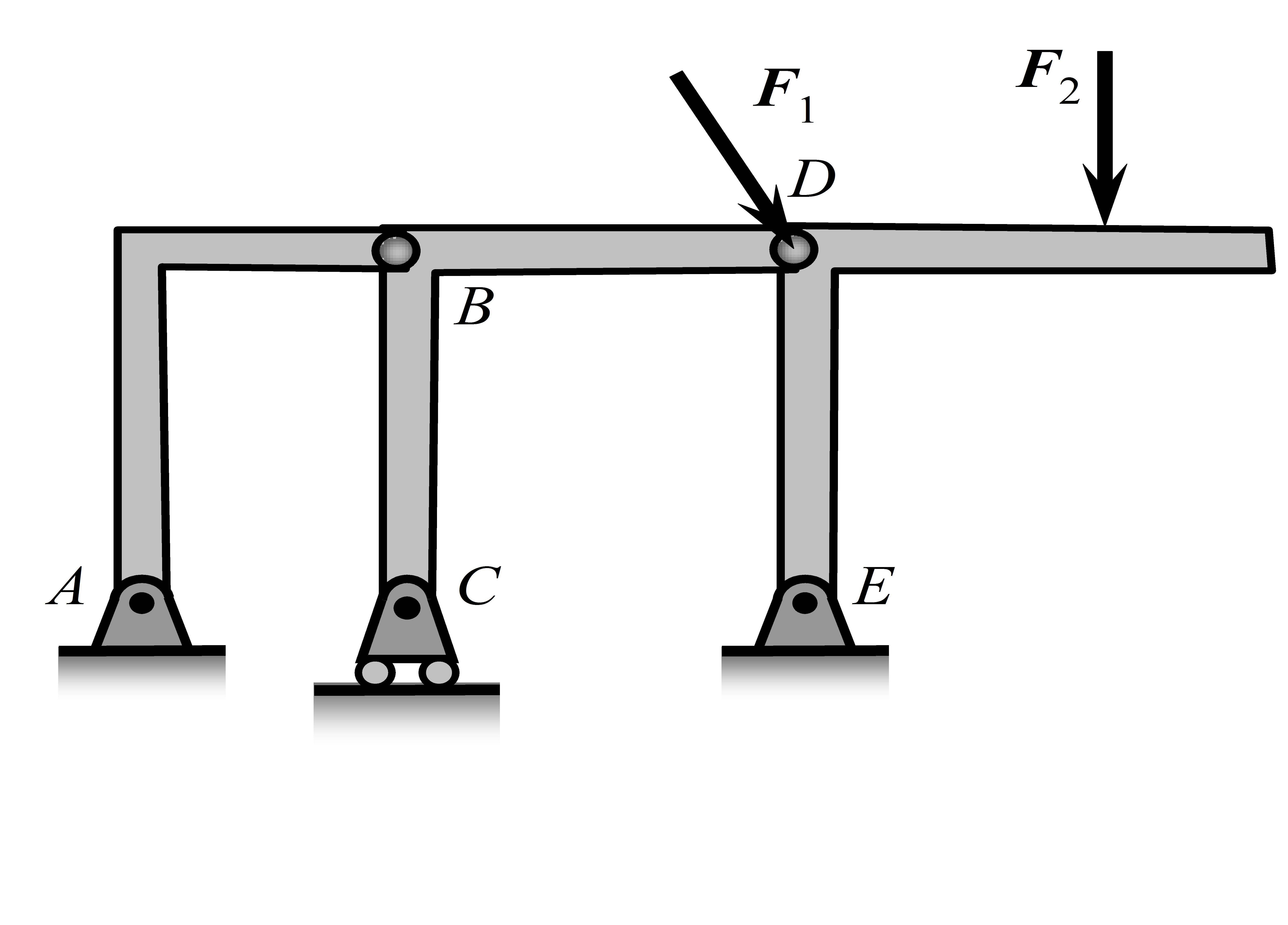 如图所示,用三根杆连接成一构件,各连接点均为铰链,B处接触表面光滑,不计各杆的重量。图中尺寸单位为m。则铰链D处所受到的力为(  ).