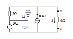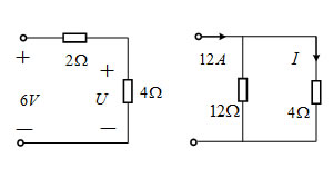 根据分流定律,题图右边电路中,4Ω电阻支路分得的电流I=_______(A)。(提示:只需填写一个数字)
