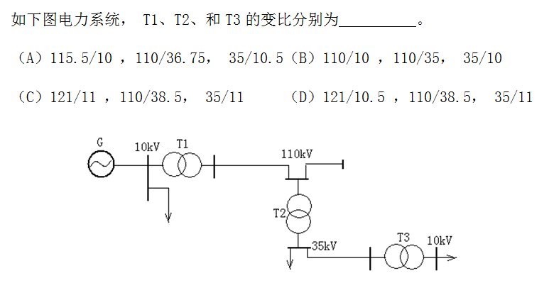 T1的变比是:(请注意,填写变压器变比一律按“高压侧额定电压/低压侧额定电压”的方式,不用写单位,不要化简。比如:110/11,不要写成10。否则系统不给分数。)