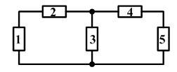 电路中有5个元件,如果已知其中4个元件功率分别为 P1 = −205 W,P2 = 60 W,P4 = 45 W,P5 = 30 W, 那么元件3的功率是 W。