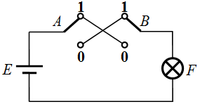 由开关组成的逻辑电路如图所示,设开关A、B 分别有如图所示为0”和“1”两个状态,则电灯F 亮的逻辑式为 。