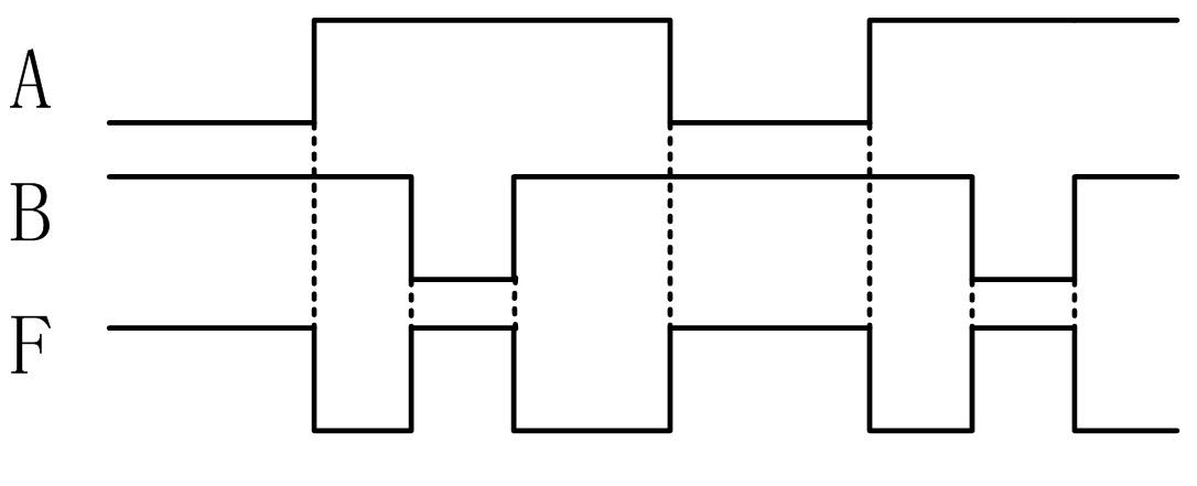 已知二变量输入逻辑门的输入A、B和输出F的波形如图所示,则该逻辑电路为 。