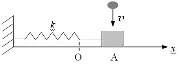 如图所示,当简谐振子到达正最大位移处,恰有一泥块从正上方落到振子上,并与振子粘在一起,仍作简谐运动。则下述结论正确的是