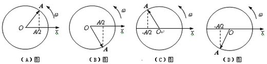 一个质点作简谐运动,振幅为A,在起始时刻质点的位移为-A/2 ,且向O轴的负方向运动,代表此简谐运动的旋转矢量图为