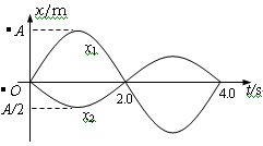 如图所示的是两个简谐运动曲线,它们合成的余弦振动的初位相为____________。