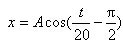 将水平弹簧振子向右拉离平衡位置10cm,由静止释放而简谐运动,振动周期为2 秒。若选拉开方向为正方向,并以振子第一次经过平衡位置时开始计时,则这一简谐运动的振动方程为: