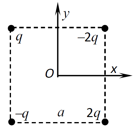 边长为a的正方形的四个顶点上放置如图所示的点电荷,则中心O处场强
