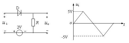 电路如图所示,二极管D为理想元件,输入信号ui为如图所示的三角波,则输出电压uO的最大值为( )。