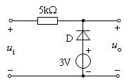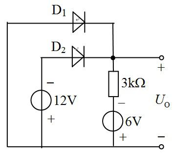 电路如图所示, 二极管D为理想元件,当输入信号 ui=12sinwtV时,输出电压的最大值为( )。