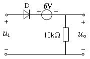 电路如图所示,输入信号ui = 6sint V时,二极管D承受的最高反向电压为( )。