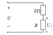 在下图所示电路中,电源电压U = 6 V。若使电阻R上的电压U1 = 4 V,则电阻R为多少欧姆?
