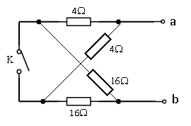 图示电路中a、b端的等效电阻Rab在开关K打开与闭合时分别为多少欧姆?