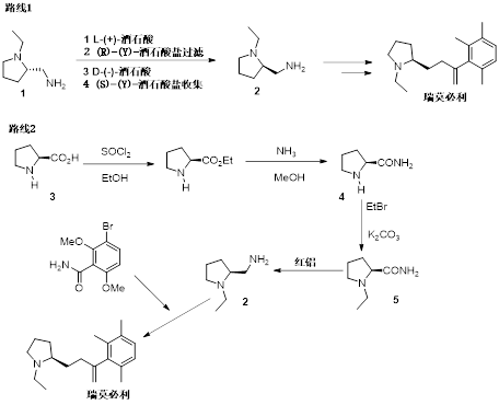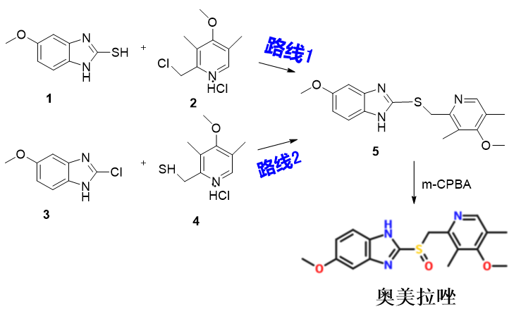 路线1→3利用氰胺中间体获得中间体3,更安全,可用于工业化生产。】