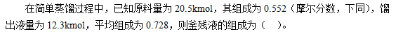 因为简单蒸馏为单级过程,故此简单蒸馏的物料衡算应该进行微分衡算。