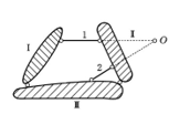 任意两根链杆的约束作用都相当于其交点处的一个虚铰,如图中链杆1和链杆2的交点O可视为虚铰。