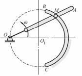 如图所示摇杆滑道机构中的滑块M 同时在固定的圆弧槽BC和摇杆OA 的滑道中滑动。如弧BC 的半径为R=0.5m,摇杆 OA的轴O在弧BC的圆周上。摇杆绕O轴以等角速度ω=4rad/s转动,当运动开始时,摇杆在水平位置。M点的加速度为( )。