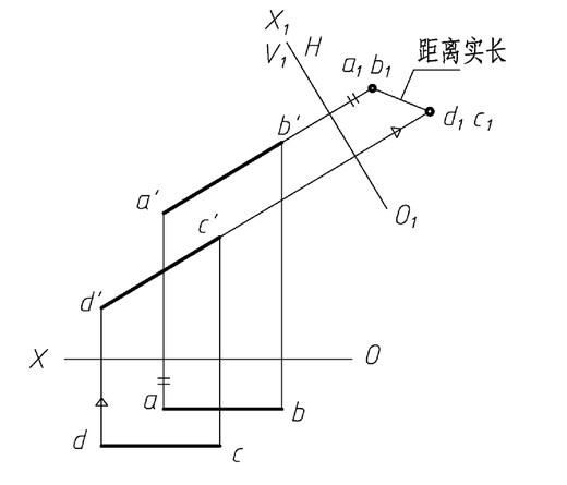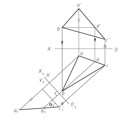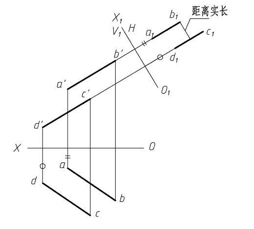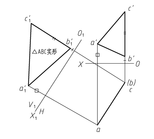 判断利用换面法求平面ABC与投影面H夹角的作图是否正确。