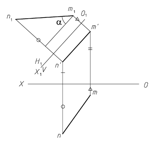 判断利用换面法求直线MN与投影面H夹角的作图是否正确。