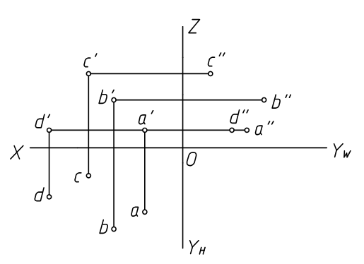 下列几组点中,哪一组是W面上的重影点,并且n"为可见?