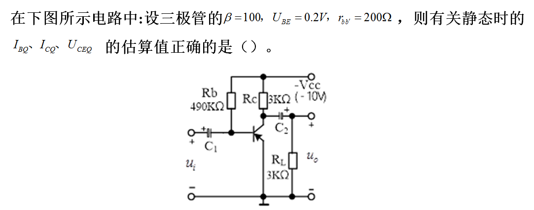 答案: 【 IBQ=20μA,ICQ=2mA,UCEQ=-4V】