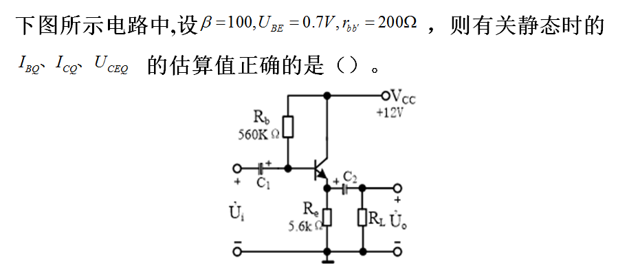 答案: 【 IBQ=10μA,ICQ=1mA,UCEQ=6.4V】