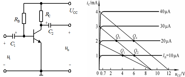 如图所示,某固定偏置单管放大电路的静态工作点原来位于Q2,若将直流电源UCC适当增大,则静态工作点将移至()。