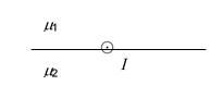 一根无限长的直线电流通流I,位于两种半无限大磁介质的分界面内,如下图所示,