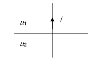 一根无限长的直线电流通流I,垂直于两种半无限大磁介质的分界面放置,如下图所