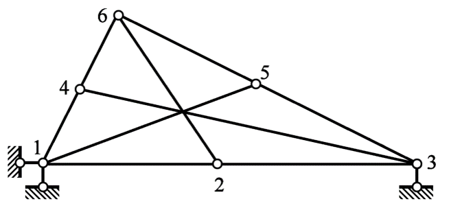 平面铰结体系链杆体系的计算自由度W=2j-b-r,式中j表示体系中的单铰个数。