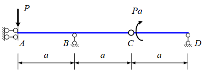 图示多跨梁,B支座的反力为:(负号表示沿y轴负向)