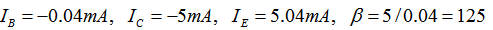 测得工作在放大区的双极型晶体三极管各极电流如图所示,则该管的类型、各管脚电流以及β值为