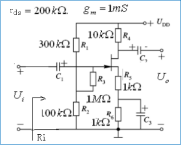 因为场效应管本身输入电阻为无穷大, 所以场效应管放大器的输入电阻完全取决于偏置电路的电阻
