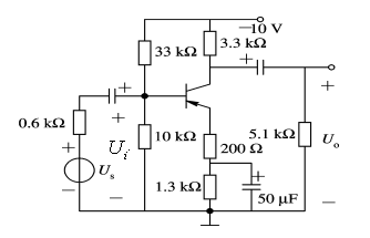 带负反馈的共发射极放大器如图所示,晶体管的rbe = 2 kW,b = 100。电路的电压放大倍数、输入电阻和输出电阻是( )