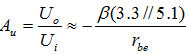 答案: 【 Au = – 0.49,Ri = 20.3 kW,Ro = 10 kW】