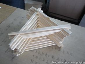 线材( )是指将多根硬质线材依照一定排列的规律, 彼此搭接形成的上下左右排列有序的多层次的立体造型。是靠重力和接触面的摩擦力来维持形体,要注意材料间摩擦力的大小和重心的位置,各个构件相的倾斜角不要大,否则就会引起滑动而成为不稳定结构。