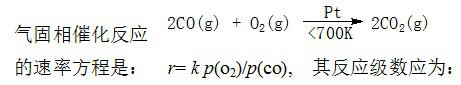 答案: 【 对 O2是一级,对 CO 是负一级】