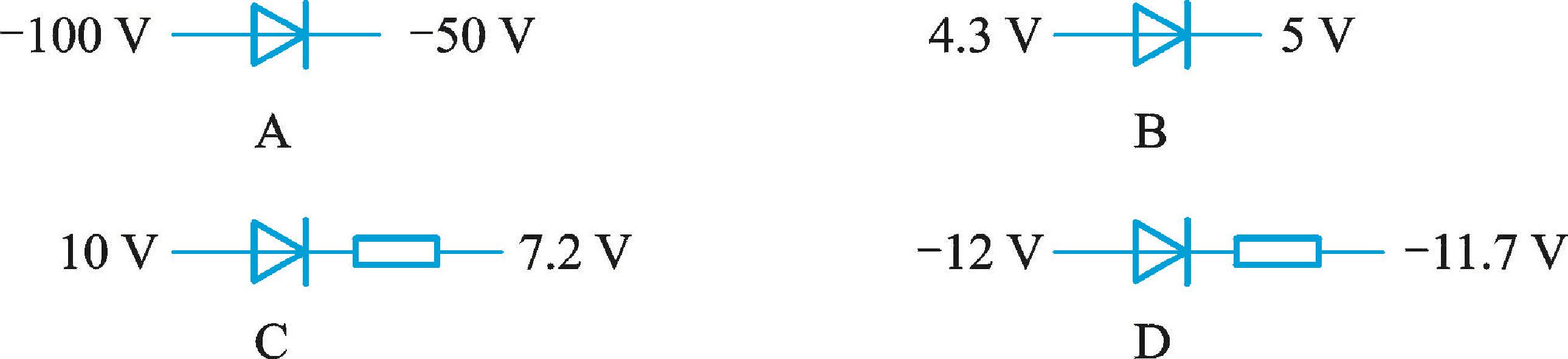下图所示二极管中,工作于正常导通状态的硅管是( )。