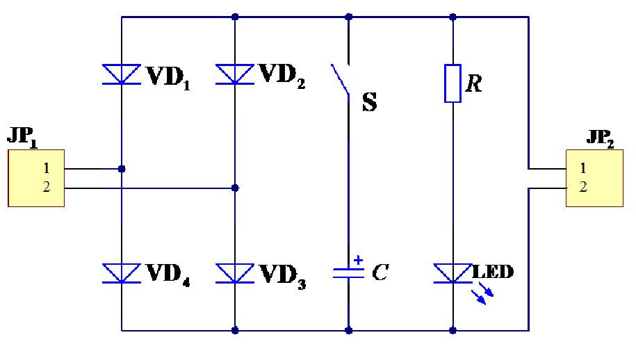 在下图所示电路中,当开关S断开时,该电路为半波整流电路,当开关S闭合时,该电路为桥式整流电容滤波电路。