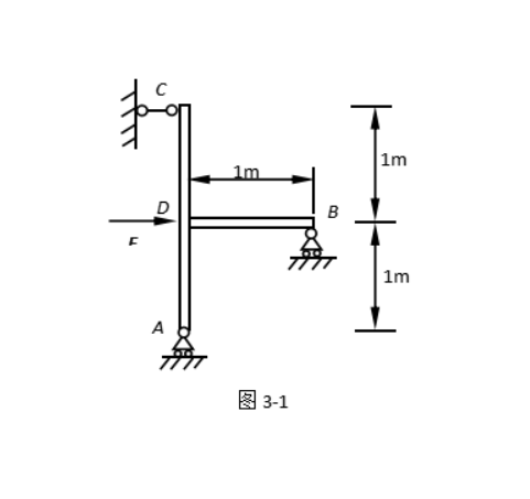 1. 如图3- 1所示,结构在D点作用一水平力F,大小为F=2 kN,不计杆ABC的自重,则支座B的约束反力为( )