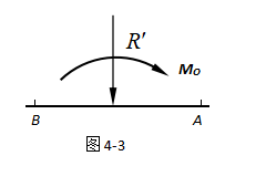 1. 如图4-3所示,一平面力系向O点简化为一主矢 和主矩M0,若进一步简化为一合力,则合力R为( )。