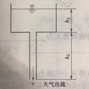 如图所示,一大容器接一铅直管道,容器内的水通过管道流入大气。已知,h1=1m,h2=3m。若不计水头损失,则管道出口流速水头为________。