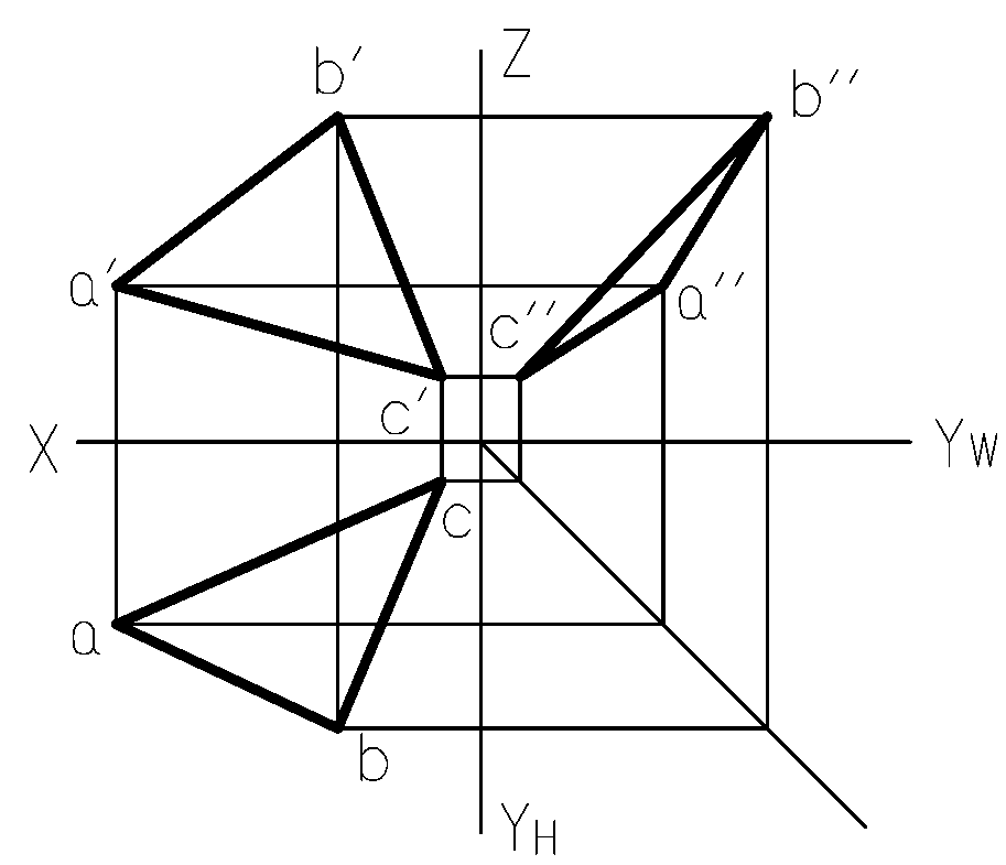 根据空间点的xyz坐标,就能够画出其三面投影图。】